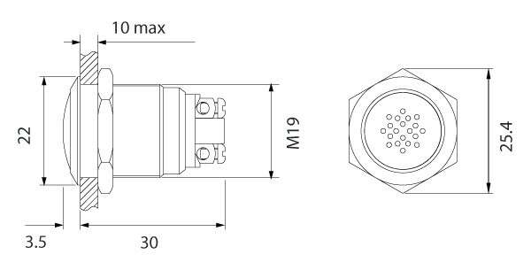 Buzzer acier inox d19mm halo lumineux rouge
