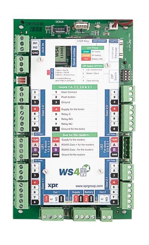 • Centrale 4 lecteurs ( RS485 ) pour gérez 4 portes : Relais de porte : ( 2A/48 VAC/DC Maximum )